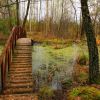 Ще пару років назад на території Міжрічинського парку, що на Чернігівщині, болотяні ділянки були повністю вкриті водою. Проте зараз, через зниження ґрунтових вод, води практично немає.